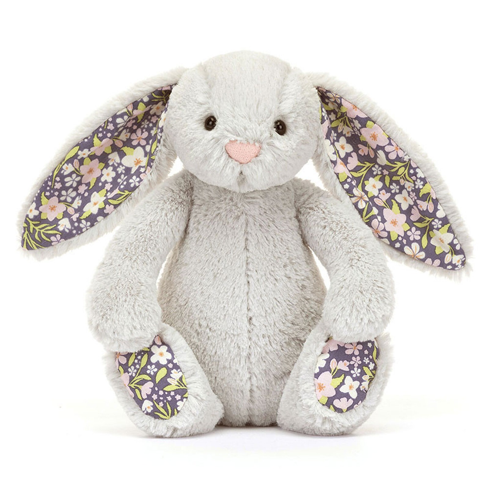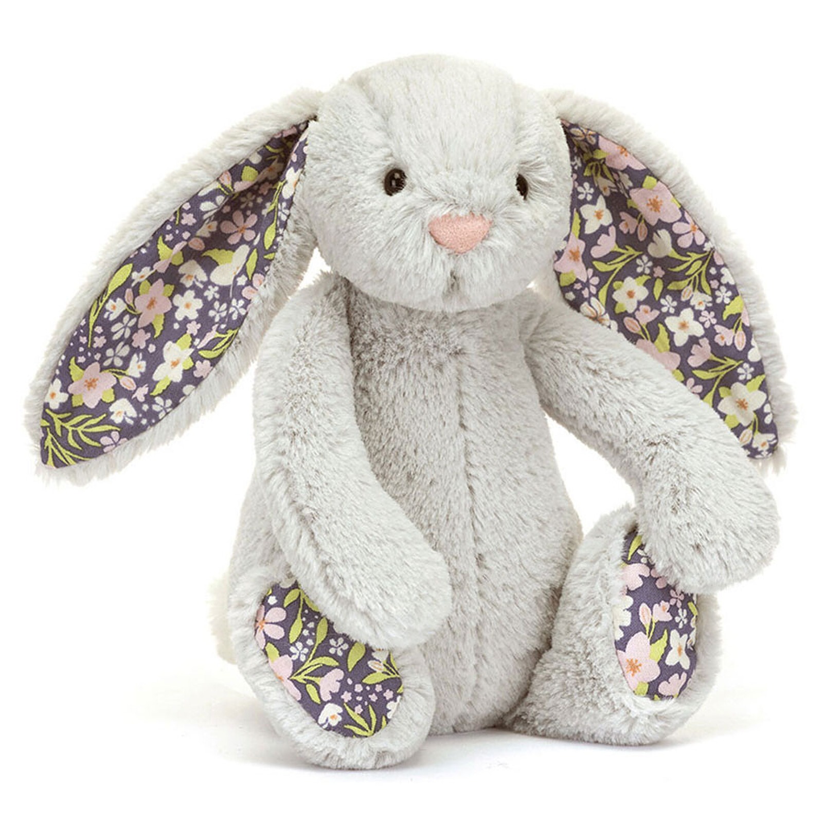 La peluche Blossom Silver Bunny Bloom de Jellycat est un charmant petit lapin aux oreilles fleuries à l\’intérieur. Avec son pelage tout doux, c\’est un compagnon idéal pour les gros calins !