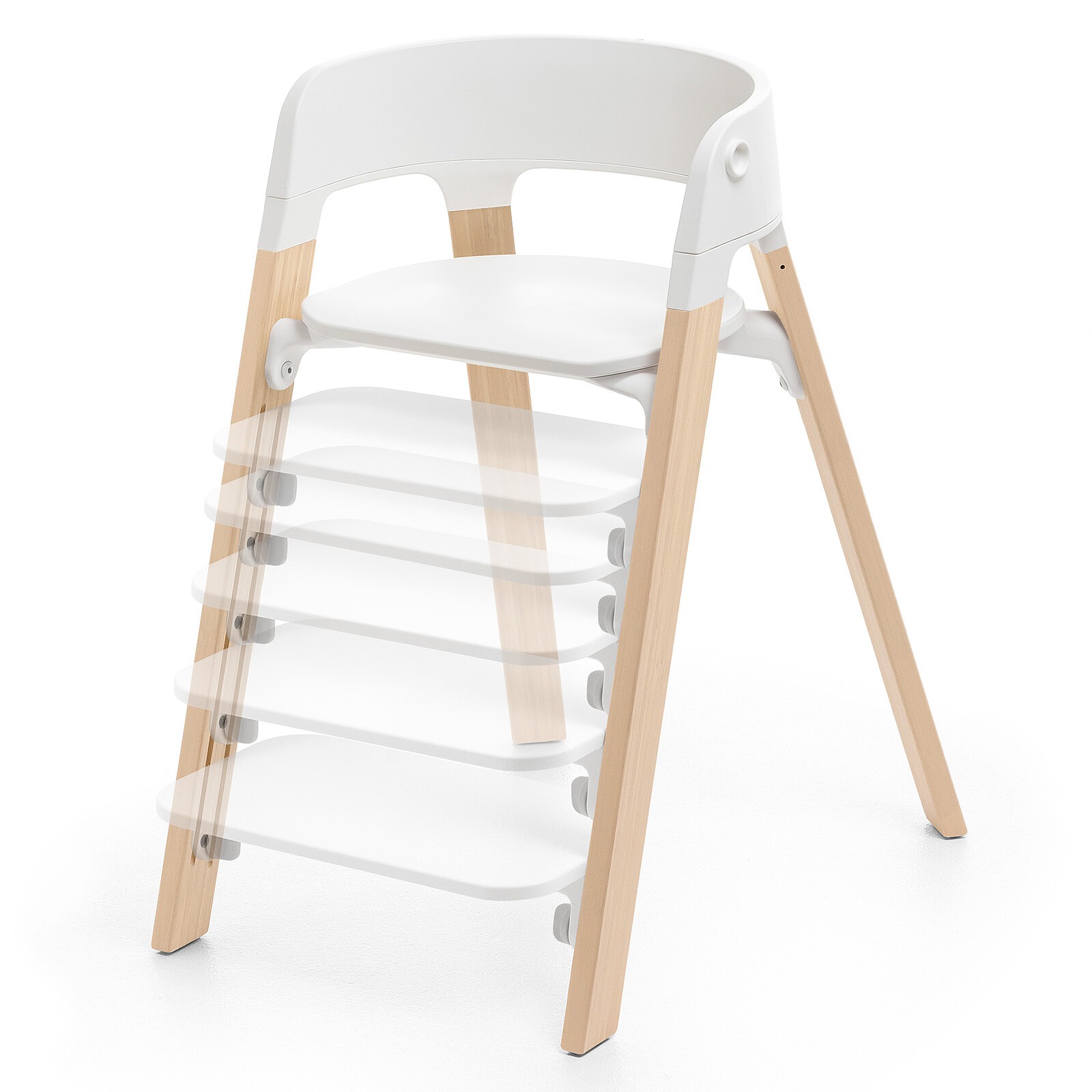 STOKKE – Chaise Haute Steps Avec Plateau et Baby Set – Blanc / Hêtre