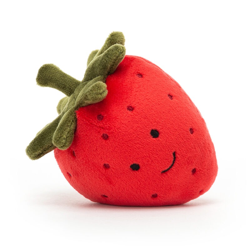 Offrez cette délicieuse peluche Fraise de la collection Fabulous confectionnée par Jellycat. Une jolie peluche en forme de fraise très sucrée, avec sa fourrure rouge pimpante, son chapeau vert et son magnifique sourire donnera le plein de vitamine et de tendresse à bébé.