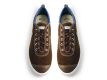 Adaptée aux vendredis décontractés, c’est une sneaker en daim avec renforts en cuir, un intérieur à motifs pied de poule et sans oublier le bouton en noix de coco de FAGUO.