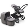BUGABOO – Fox 5 Poussette Naissance et 2ème Age – Capote Blanc Brume , Habillages Gris Chiné , Châssis Graphite