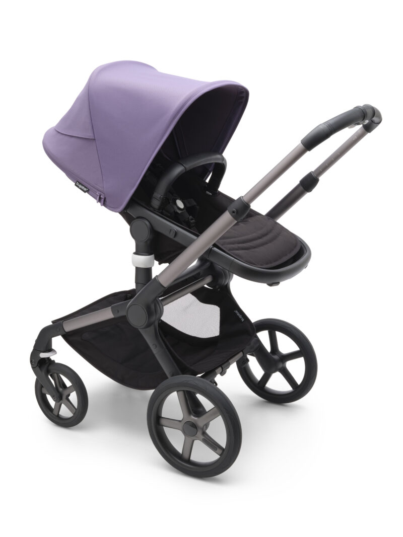 BUGABOO – Fox 5 Poussette Naissance et 2ème Age – Capote Violet Astro , Habillages Nuit Noire , Châssis Graphite