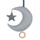 Ce mobile musical a la forme d\’une lune avec un joli bonnet tricoté.