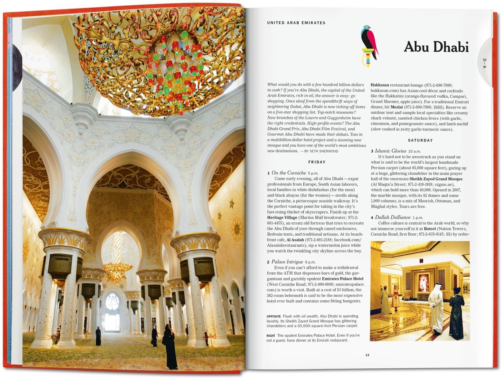 • Vos guides sont les journalistes du Times – correspondants étrangers, écrivains voyageurs, journalistes culinaires et photojournalistes –, qui ont réuni leur connaissance intime et leurs enquêtes approfondies pour offrir un nouveau regard sur toutes ces métropoles, mêmes les plus visitées. Théâtre comique au cœur de Chicago, promenade en bateau à longue queue sur le fleuve Chao Phraya qui traverse Bangkok ou montée en téléphérique au sommet du mont Srd à Dubrovnik, toutes les idées et inspirations vous attendent, classées par ordre alphabétique, dans ce recueil d’aventures urbaines.