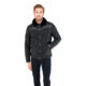 Doudoune noir pour Homme – Tissu résistant et coupe-vent de l’eau – Col en peau de mouton véritable. Fermeture à pression devant. 2 poches basses plaquées – Garniture en cuir sur les poignets