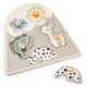 L’enfant pourra facilement saisir les grosses pièces de puzzle et aider Lalee, Birdee, Antee et le soleil à retrouver leurs places. Le cactus à disparu! Il faut le remettre au pied de la montagne. Ça y est – toutes les pièces ont retrouvé leurs places!Le puzzle Lalee en bois est dans de jolies tonalités sable et fabriqué en bois d’origine responsable. Il est peint avec de la peinture à l’eau sans substances nocives pour que votre enfant puisse jouer en toute sécurité.