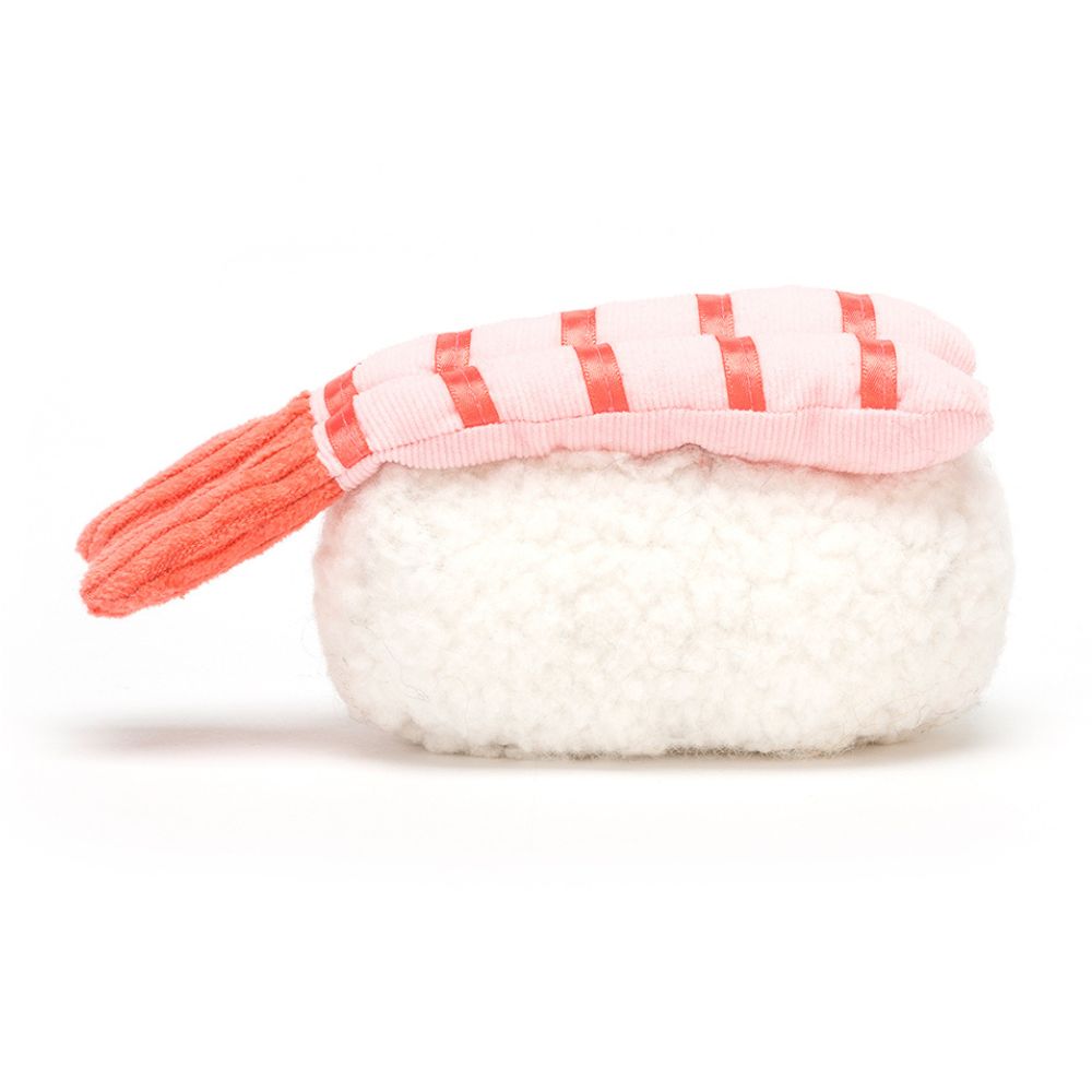 Silly Sushi Nigiri s’est mis sur son 31 pour accueillir bébé. Riz blanc tendre et moelleux surmonté de crevettes bien fraîches, en voilà un sushi exemplaire ! Douce et légèrement décalée, cette adorable et moelleuse boule de riz conçue par Jellycat saura attendrir les petits gourmands.