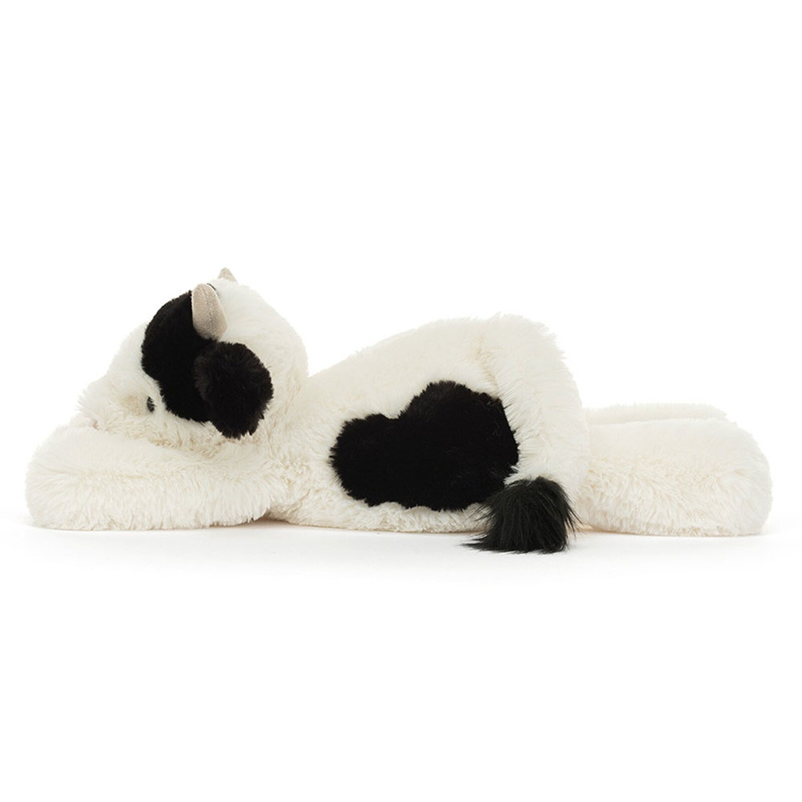 Smudge Cow est une jolie vache toujours allongée. Elle se prélasse et se repose dans les prairies, la belle vie ! Avec ses petites cornes et sa queue en plumeau elle est adorable !