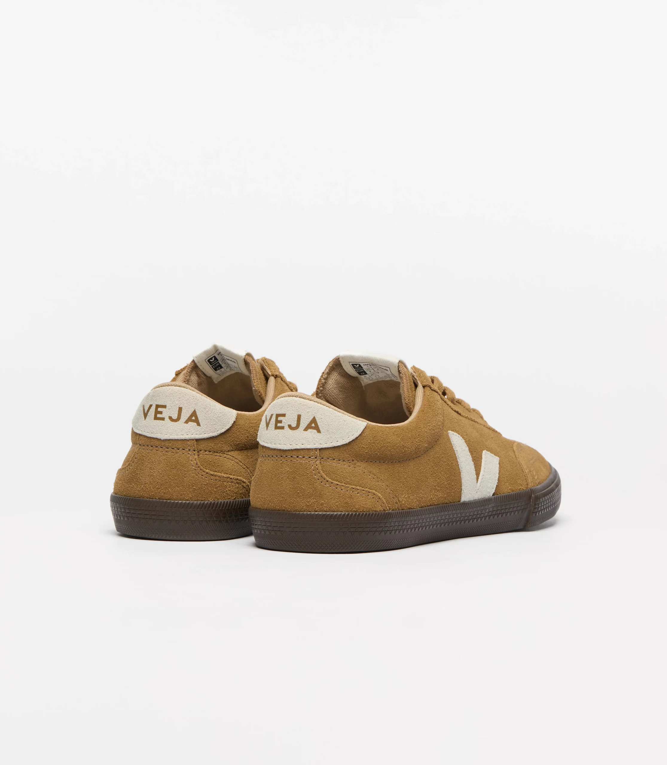 Le suède est l’envers du cuir, poncé pour obtenir un aspect doux et souple. Il provient de fermes situées dans le Rio Grande do Sul et est tanné au Brésil sans produits chimiques dangereux ou interdits. VEJA utilise des teintures conformes aux réglementations tout en adoptant une utilisation raisonnée de l’eau durant le processus de tannage. Ce suède est ensuite enduit d’huiles hydrofuges sans PFC (composés chimiques) pour protéger les baskets contre la pluie fine.